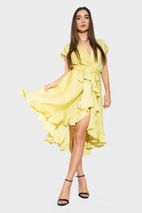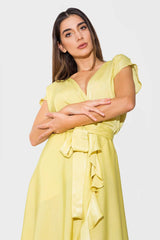 Flared Midi Dress with Ruffles, Palace, Yellow