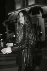 • sacou cu croiala adaptata si paiete negre stralucitoare