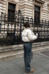 Milky Way Mist Puffer este o geaca oversized in nuanta crem laptoasa, ideala pentru sezonul rece. Cu un design matlasat, guler inalt si mansete elastice, aceasta piesa aduce un plus de confort si stil urban oricarei tinute. Versatila si calduroasa, este alegerea perfecta pentru zilele friguroase din oras.