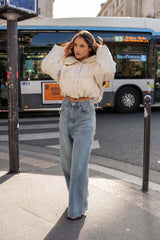 Geaca Puffer Oversized cu Guler Inalt, Bej, Milky Way