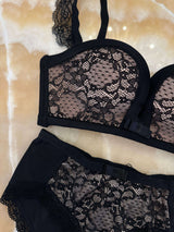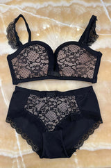 Set Lenjerie Intima cu Dantela, Negru, Midnight Charm