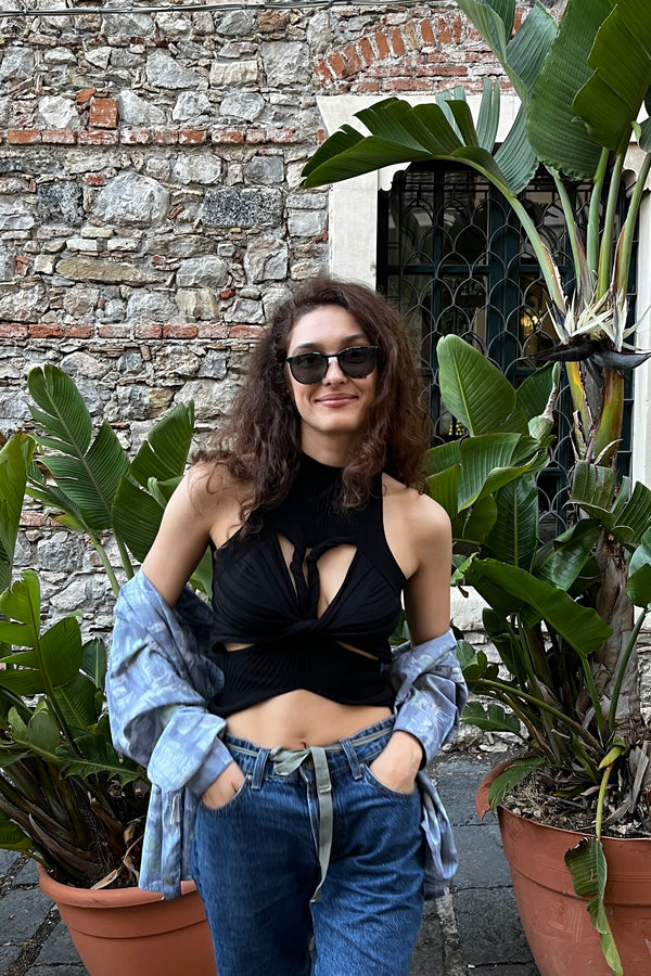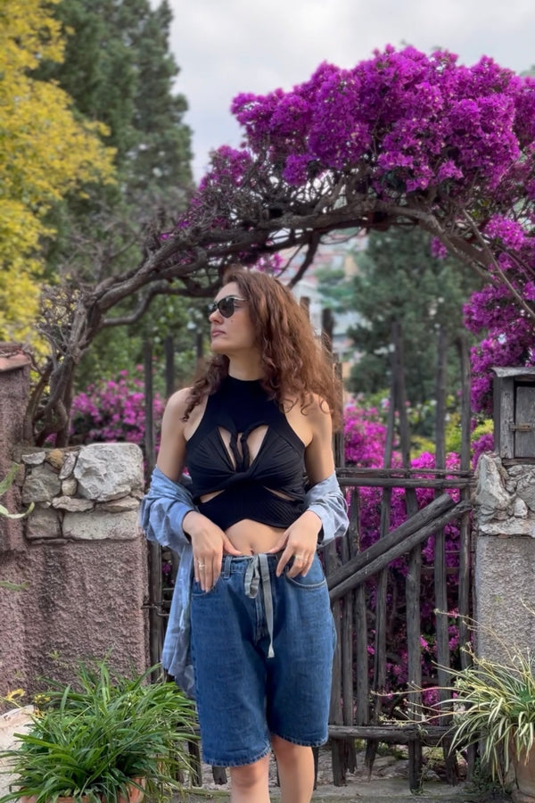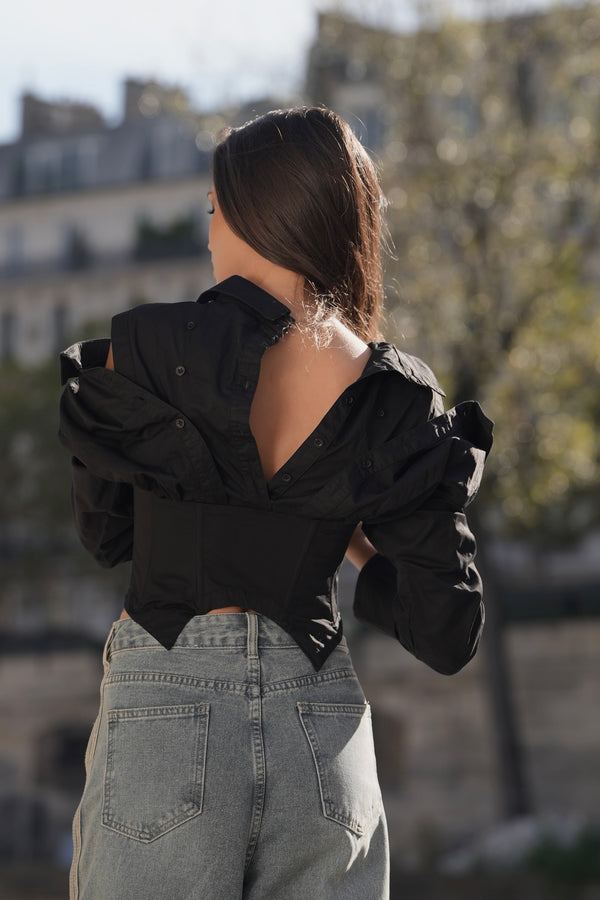 Set cu Top, Camasa si Pantaloni Scurti, Negru, Arya