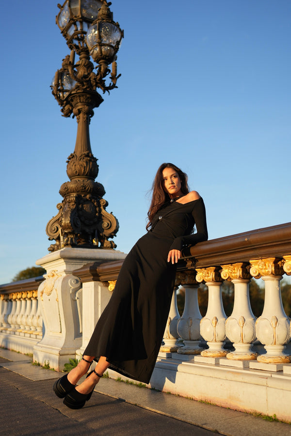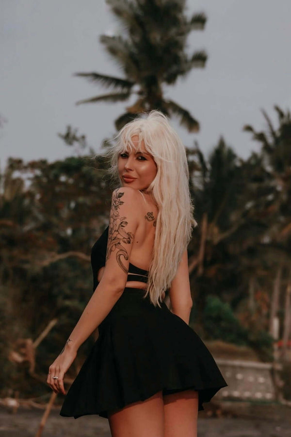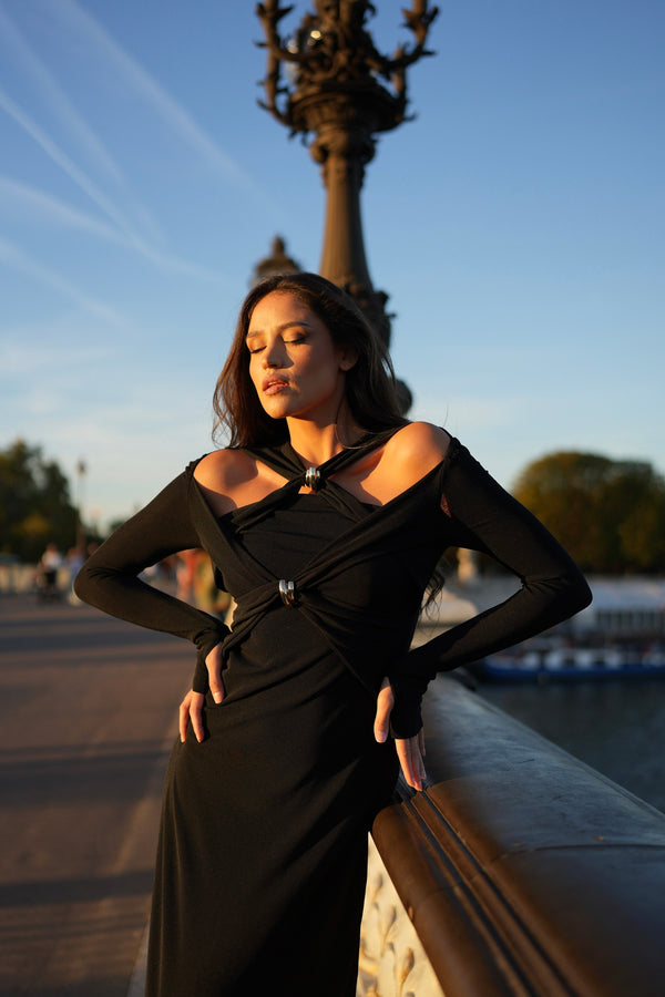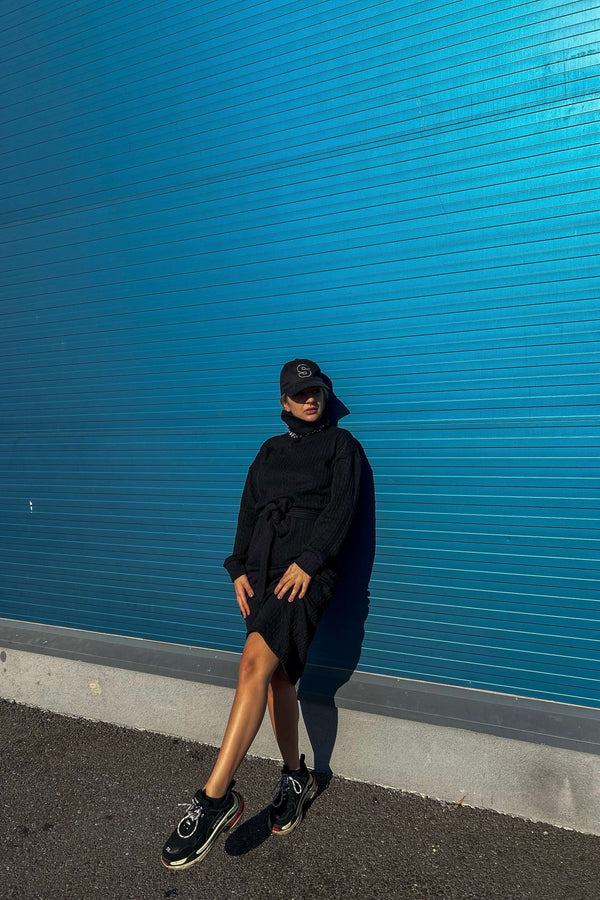 Rochie Mini din Tricot cu Umeri Goi, Neagra, Rune