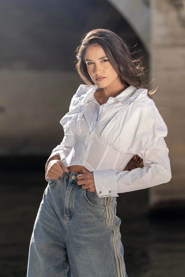 Top cu Volane si Buline Alb/Albastru, Artichoke