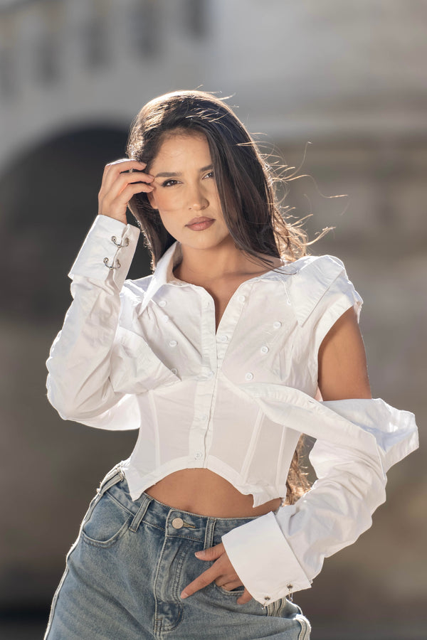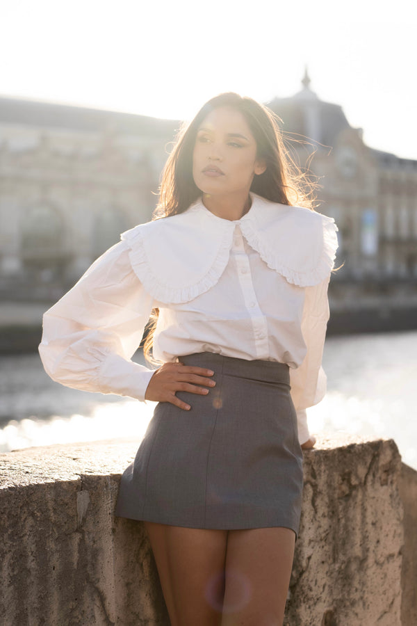 Haina de Blana Faux cu Guler Amplu, Ivory, Aurore