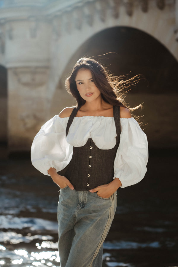 Haina de Blana Faux cu Guler Amplu, Neagra, Aurore