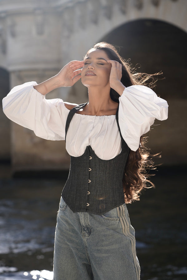 Vesta Eleganta din Tweed cu Nasturi Bijuterie Léonie, Ivory