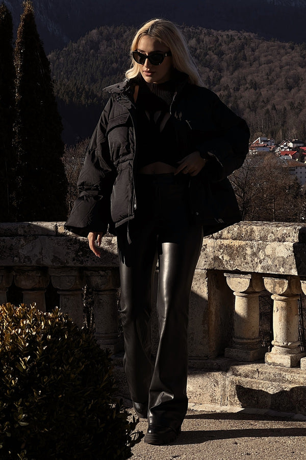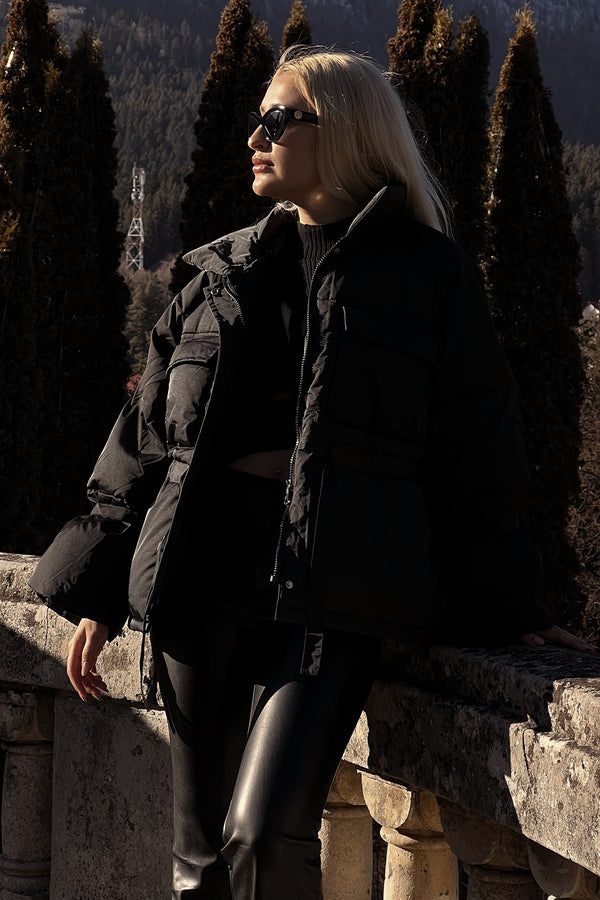 Geaca Puffer Oversized, Neagra, Midnight Mist