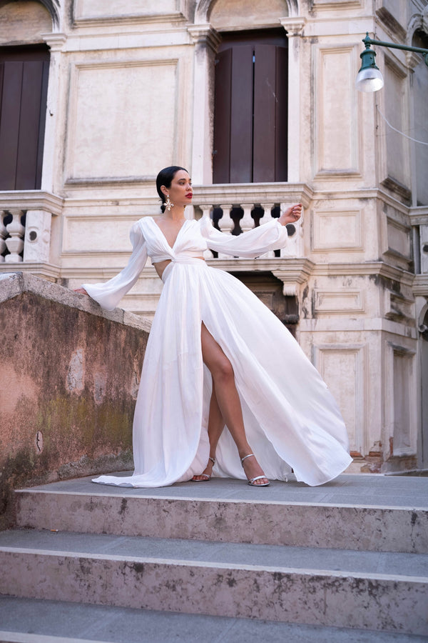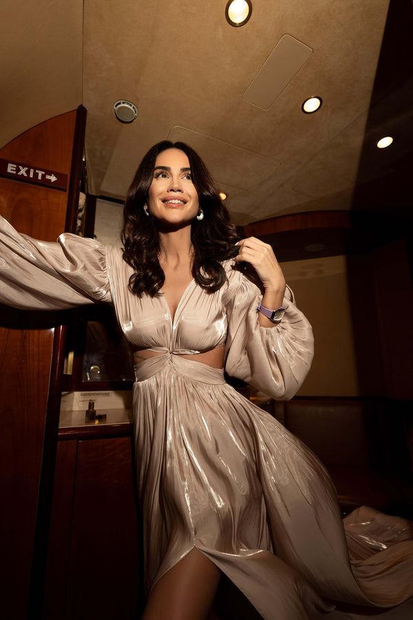 Voluminous Maxi Dress, Golden Pearl, Beige