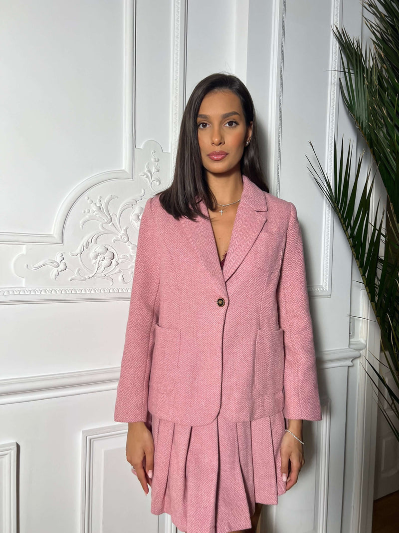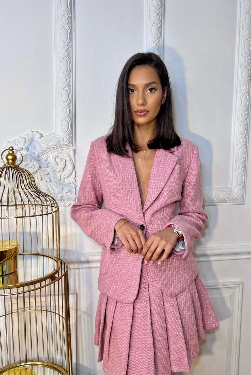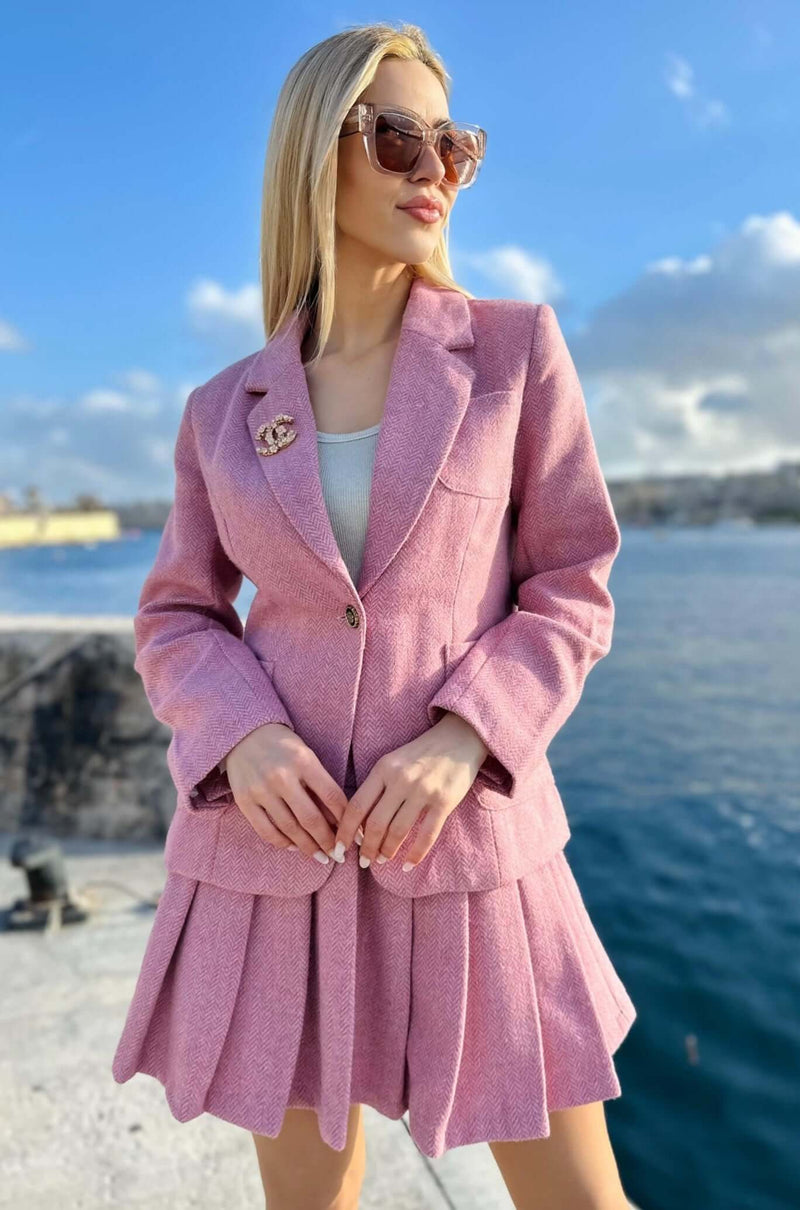 Blazer and Mini Skirt Set, Blush, Pink