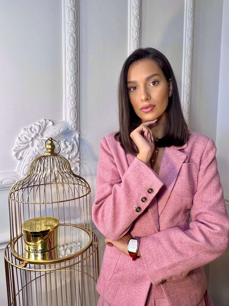 The Blush Suit brings a fresh and elegant breath of fresh air to your wardrobe, thanks to its delicate pastel pink hue and reinterpreted classic cut. Ideal for women who love femininity with a contemporary touch.