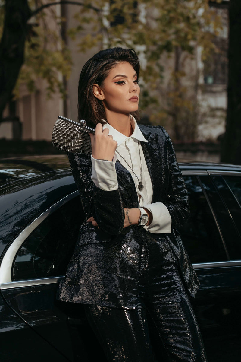 The Leo black sequin suit combines the classic refinement of a tuxedo with the bold sparkle of sequins. Ideal for galas, parties and red carpet appearances, this suit turns any moment into a visual statement.