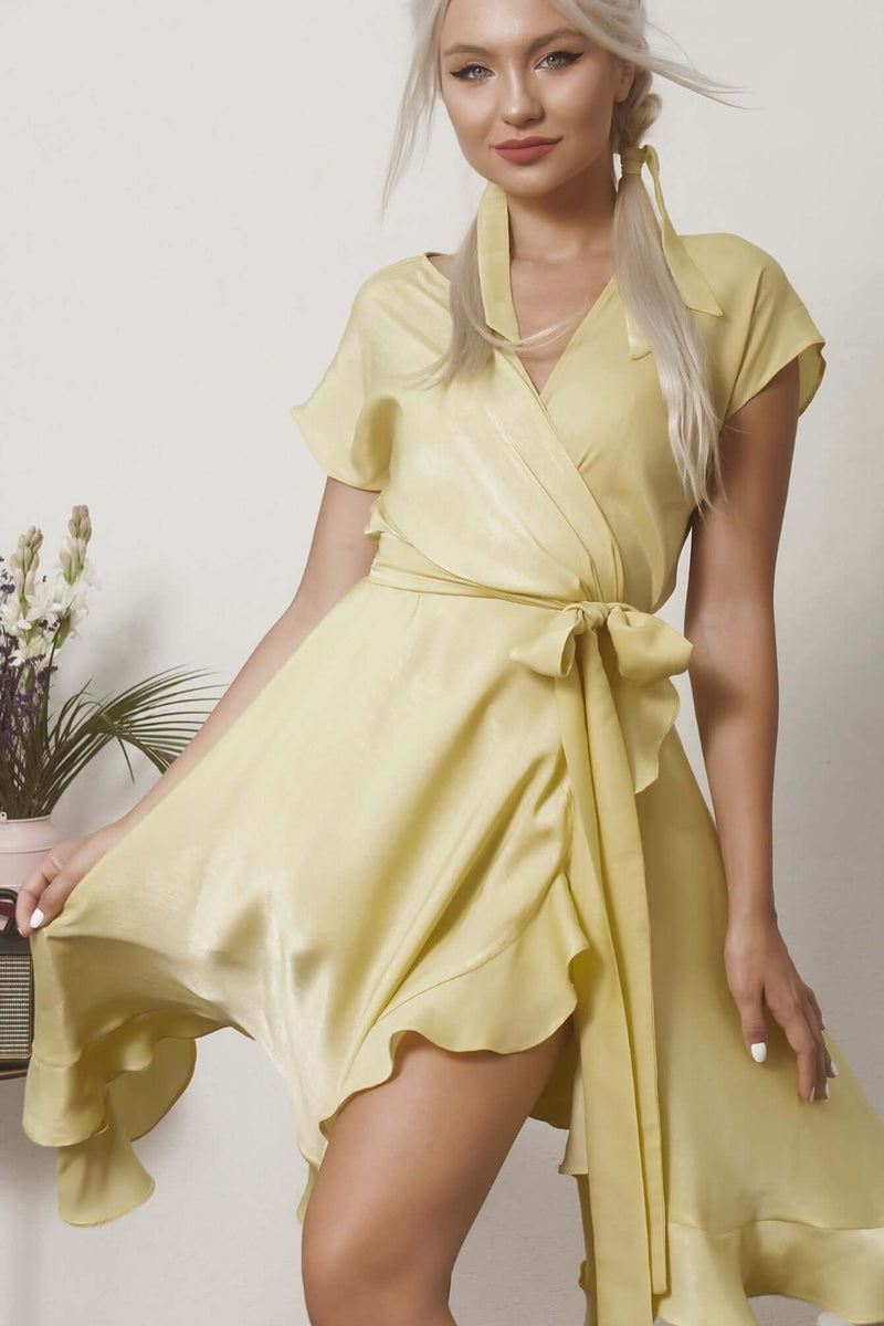 Flared Midi Dress with Ruffles, Palace, Yellow