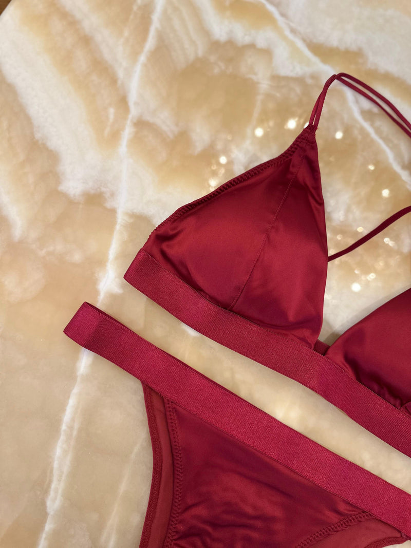 The Rubby Allure set is a statement of refinement and sensuality. Made from a fine and delicate material, this two-piece set stands out with its intense burgundy shade, giving classic elegance and visual power to every detail. It is the perfect choice for women who want to combine everyday comfort with a sophisticated aesthetic.