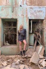 Exprima-ti increderea cu NIOBE, costumul nostru in doua piese care reinventeaza tinutele formale. Alcatuit dintr-un blazer scurt cu maneci bufante si un skort petrecut cu talie inalta, acest ansamblu imbina perfect rafinamentul cu spiritul nonconformist.