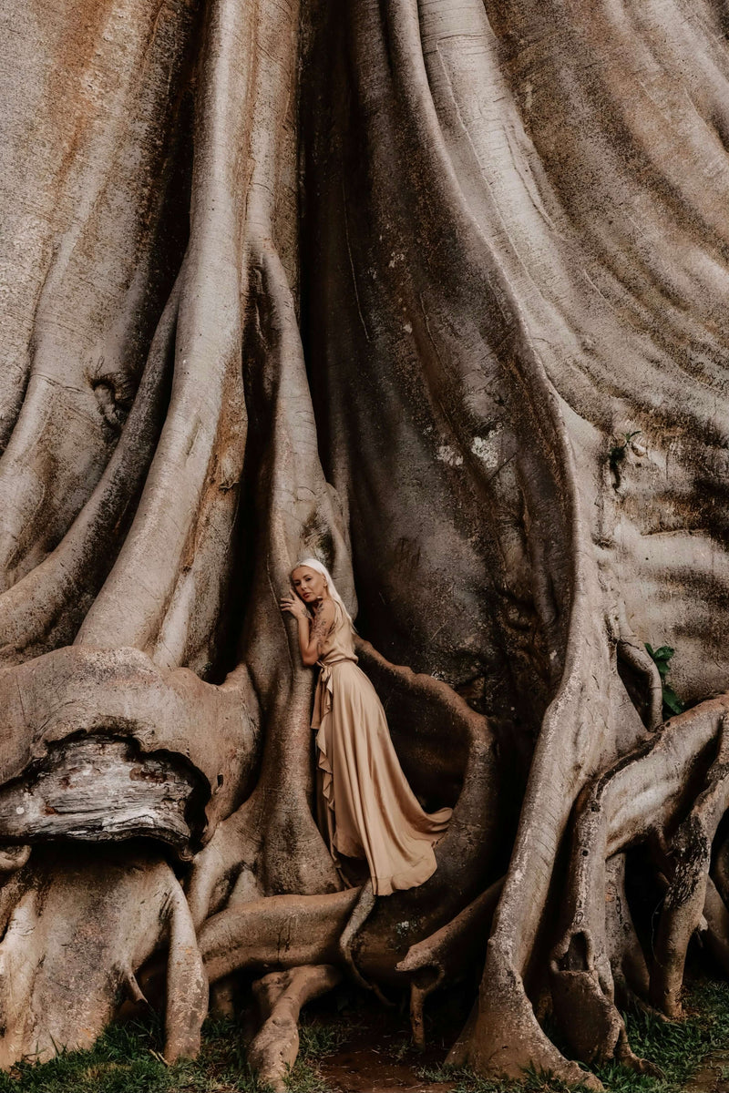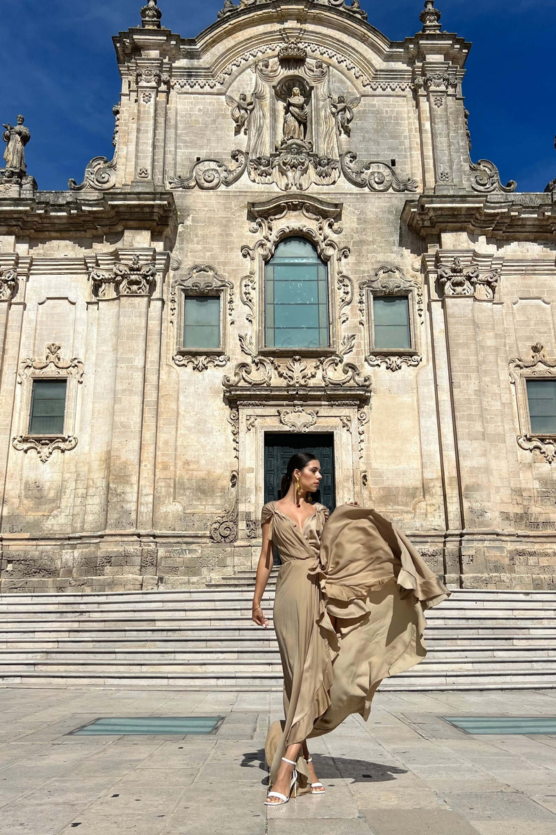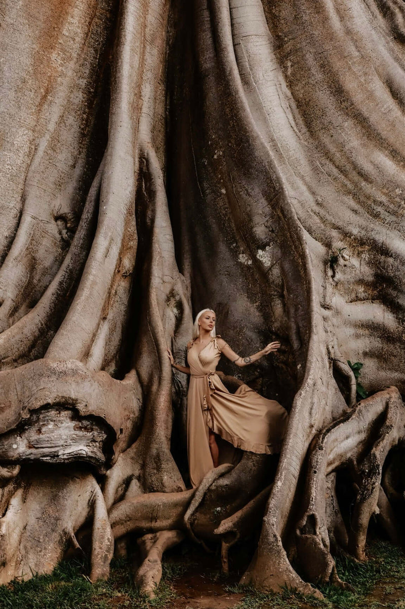 Rochie Maxi Eleganta cu Volane, Bej, Royal